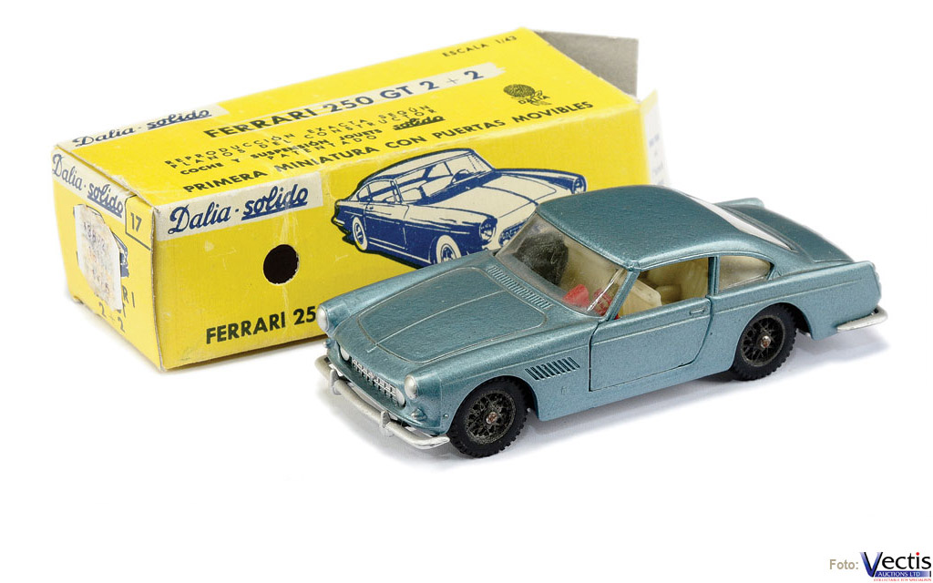 En 1957 Solido decidió adoptar el estándar europeo 1/43 poniendo a la venta su Serie 100 que se destacaba entre la concurrida competencia francesa gracias a que sus modelos incorporaban suspensión. Dalia no tardó en llegar a un acuerdo con Solido para producir sus coches en Barcelona. Contextualmente, aunque las miniaturas en zamac a escala afín a 1/43 eran enormemente populares en Europa desde los años treinta, en España esta clase de producto no había llegado a implantarse con rigor. A lo largo de los años cincuenta algunas fábricas españolas habían comercializado pequeñas series de esta clase juguetes, pero sus colecciones no tuvieron continuidad más allá de un par de años. Es evidente que Dalia vio en los productos de Solido la posibilidad de cubrir un nicho de mercado prácticamente desierto en nuestro país. Al ser fabricados dentro de España, quedaban burladas las tasas arancelarias que pesaban sobre esta clase de productos terminados, así que el precio de venta sería razonable para una población de escasísimos recursos económicos, como era la Española. La colección (probablemente) fue presentada en la revista Motorama en 1961 y se prolongó a lo largo de toda la década sin enfrentarse a competencia. En Francia tenía lugar en una guerra de patentes entre las grandes marcas con objeto de incorporar a sus miniaturas la mayor cantidad de amenidades. Solido fue una marca fundamental en este aspecto, dotando a sus modelos de suspensiones, partes practicables, faros diamantados e incluso iluminación interior, así que su Serie 100 acabó conociéndose por su apelativo ‘High Fidelity’. Gracias a los Dalia Solido los coleccionistas españoles pudieron acceder a todas las importantes novedades tecnológicas que se fueron incorporando a lo largo de los años sesenta a los vehículos en miniatura. Tales adelantos pudieron llegar a España de la mano de los productos de Dalia, que se convirtieron en objeto de deseo para los coleccionistas adultos.