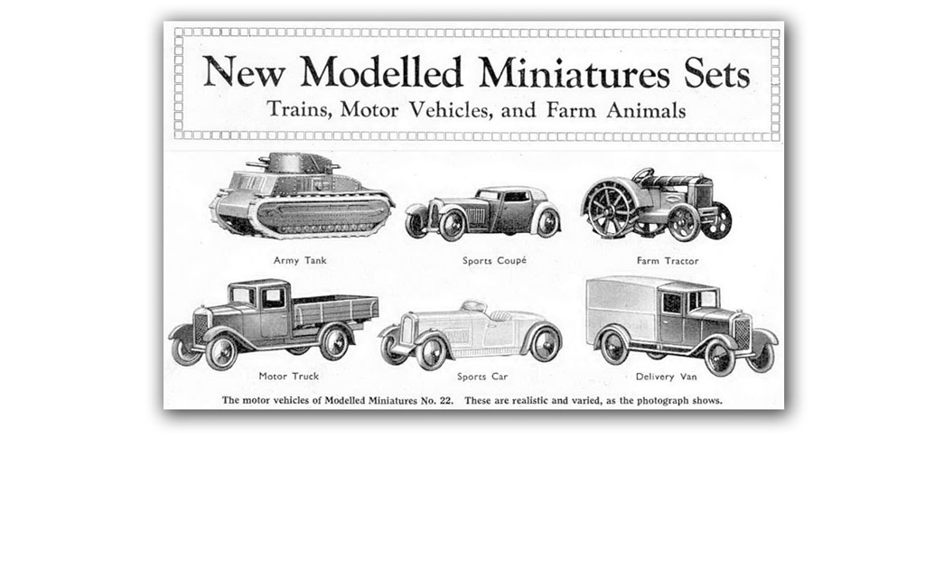 Ideadas como complementos para las miniaturas ferrovoarias a las escala O, las primeras miniaturas desarrolladas en plomo por Meccano se pusieron a la venta en Reino Unido a finales de 1933. Conozca aquellos primeros años de producción haciendo clic sobre la imagen.