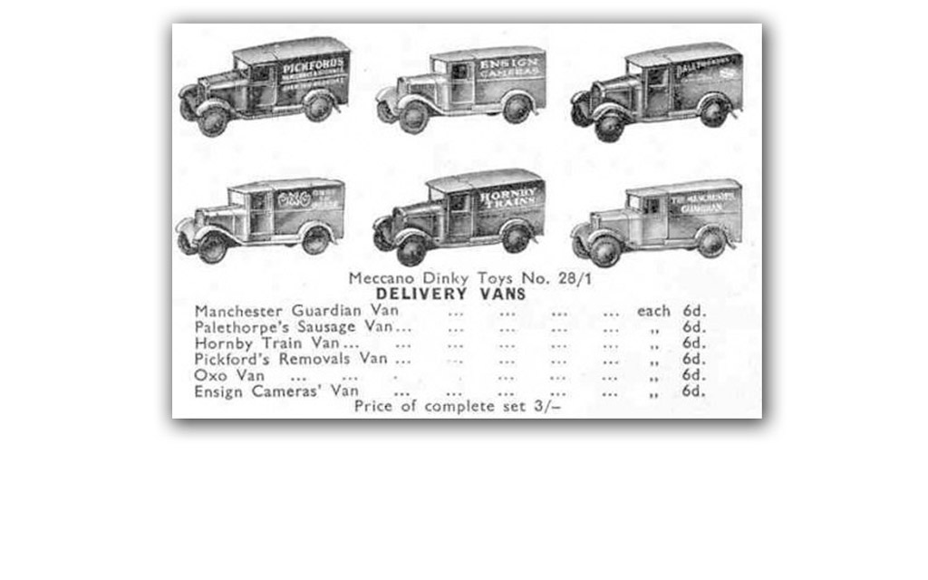 Esta es la historia de las furgonetas de reparto que Dinky Toys fabricó entre 1933 y 1941 y que estuvieron disponibles con tres tipos distintos de carrocería y multitud de decoraciones.