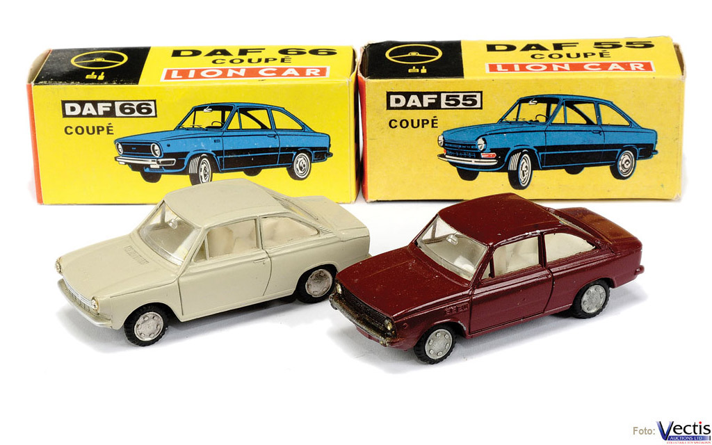 El último turismo a escala 1/43 de Lion Toys en su serie Lion car fue el coupé Daf 66 con interior detallado, ventanas y faros diamantados, que llevaba la misma referencia número 40 que el Daf 55 Coupé que había aparecido el año anterior.