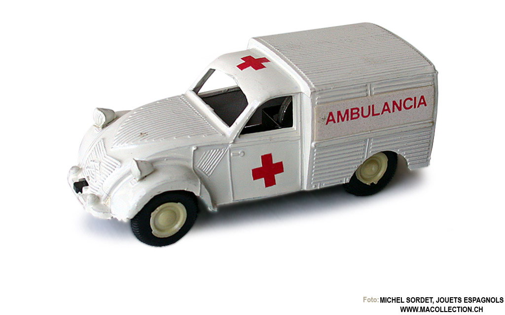 El 2CV era un modelo sencillo, detallado aunque tosco, que representaba al viejo modelo AU de 1951. No tenía ni ventanas ni interior y este anacronismo en sus prestaciones se debe a que la miniatura procedía de otra más antigua comercializada en su momento por las marcas Vercor y Comando, ambas registradas en Ibi por un mismo dueño, Joaquín Valero, desde 1950. Lo más probable es que Plásticos Albacete llegara a adquirir el molde del 2CV, aplicando a su miniatura ciertos cambios en el diseño de las ruedas (primero lisas y después adornadas con cuatro puntos), los faros (del color de la carrocería en las miniaturas albaceteñas) y, especialmente, la base. Si la del modelo de Plásticos Albacete era de plástico, la de Vercor y Comando, que también incorporaba motor a fricción, era de chapa.