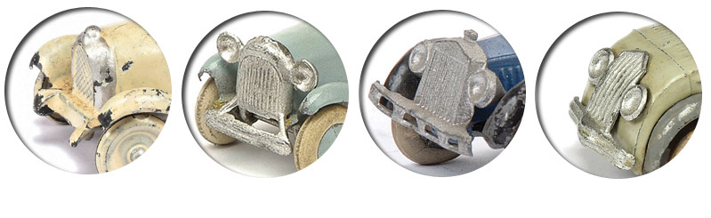 Podemos distinguir distintas fases en la evolución de los modelos. Mientras que las primeras unidades contaban con ruedas totalmente metálicas, más tarde montaron llantas en plomo y neumáticos de goma, aunque las ruedas metálicas volvieron cuando el esfuerzo bélico causo una fuerte escasez de caucho. En los primeros modelos el radiador estaba modelado en la carrocería, pero posteriormente pasaron a incorporar piezas independientes de chapa que montaban los frágiles faros y el parachoques. El experto Michel Sordet distingue cuatro tipo de radiadores: redondeado, o ‘tipo Citröen’; cuadrangular, o ‘tipo Rolls’, ‘tipo Singer’ y finalmente ‘tipo Rover’. Algunas referencias pueden encontrarse con diferentes tipos de calandra, según la etapa de su producción.