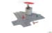 Cuando llega un coche activa una palanca que hace salir al dependiente de su caseta. El coche se detiene hasta que se levanta el tope que lo retiene manualmente.